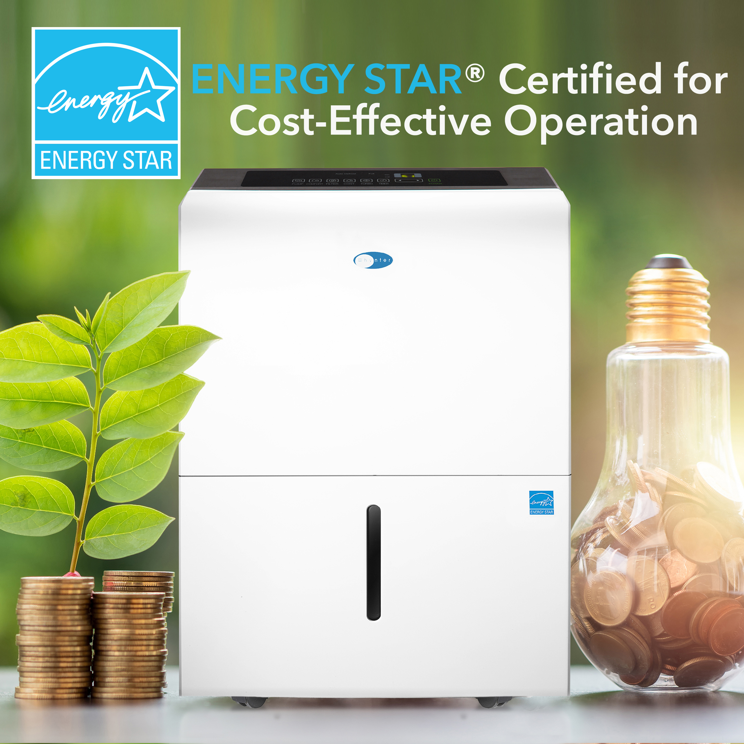 The stylish and powerful Whynter RPD-506EWP Energy Star 50 Pint Portable Dehumidifier with Built-in Pump is a high-capacity unit with an impressive capability of removing up to 50 pints of moisture from the air per day. Featuring an internal condensate pump, this unit is specifically designed for high-volume usage without having to worry about the interrupted operation.