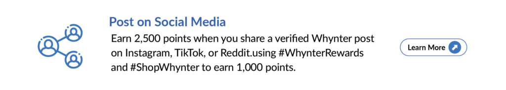 Social Sharing: Earn 2,500 points when you share a verified Whynter post on Instagram, TikTok, or Reddit.
