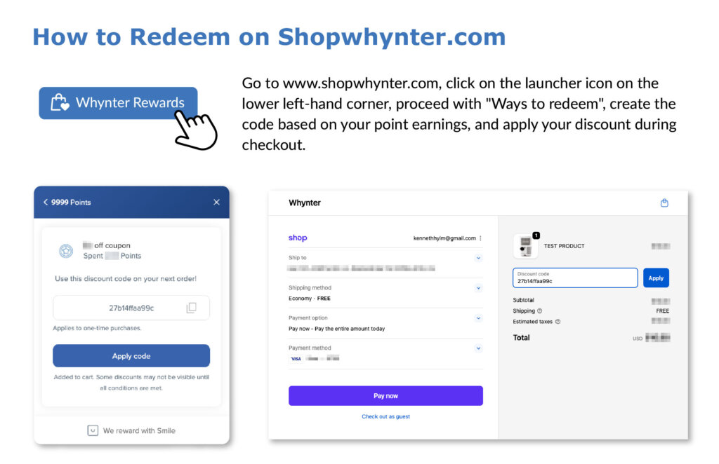 You can redeem points for discounts at checkout on ShopWhynter.com.