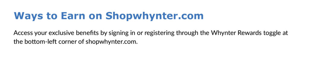 It’s free and easy! Simply create an account on ShopWhynter.com. Once you’re logged in, you’ll automatically start earning points for eligible actions — no separate sign-up required.
